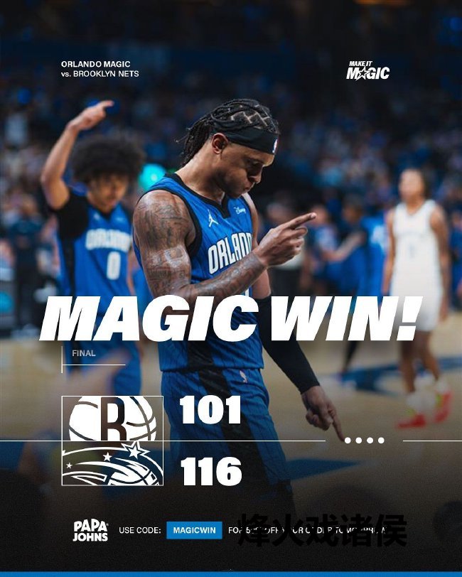 魔术(2-0):小瓦格纳29分6篮板5助攻、大瓦格纳18分3篮板、班凯罗15分6篮板9助攻、波普10分、萨格斯10分5篮板、布莱克10分3篮板5助攻、卡特8分11篮板4助攻
